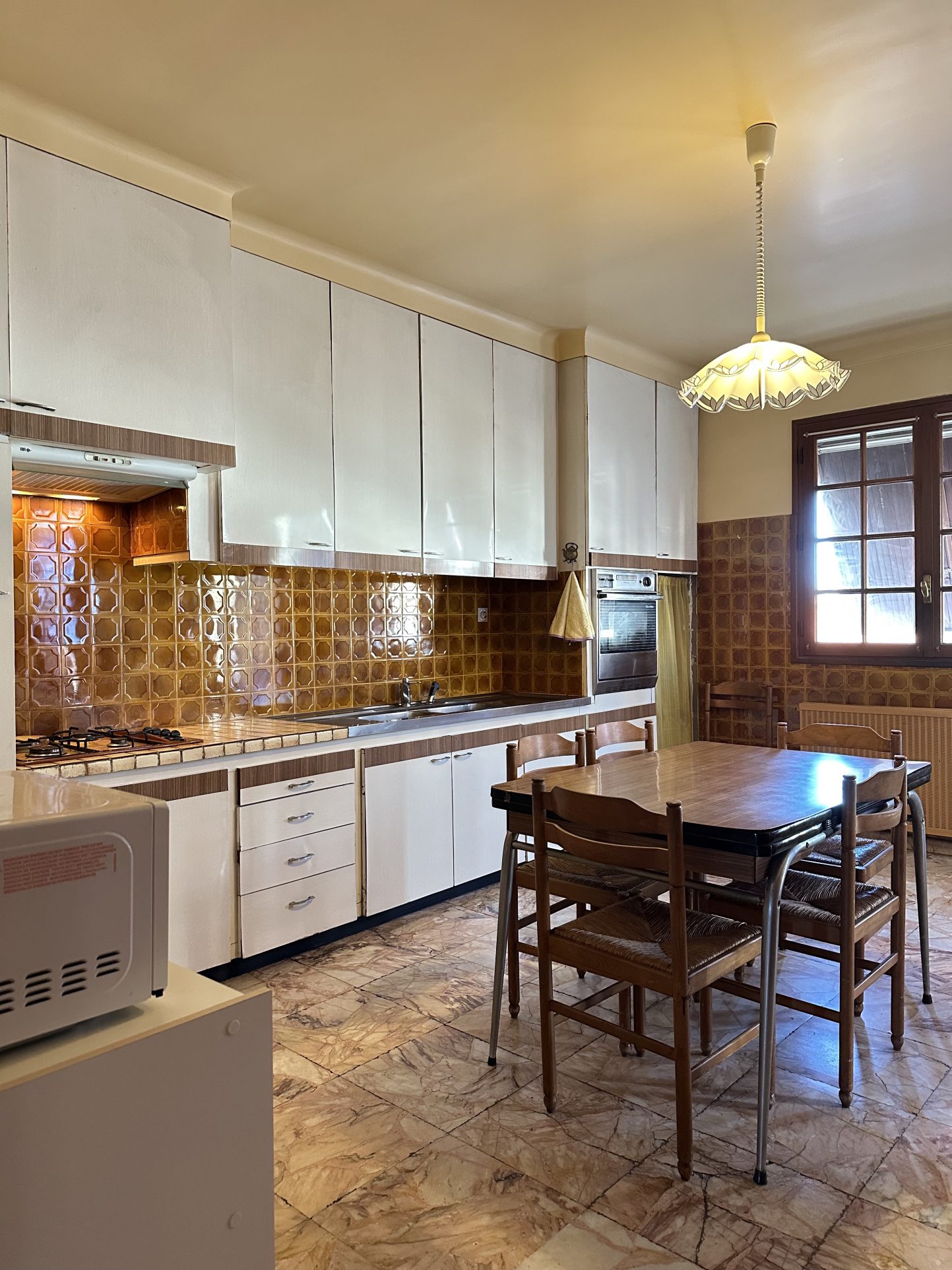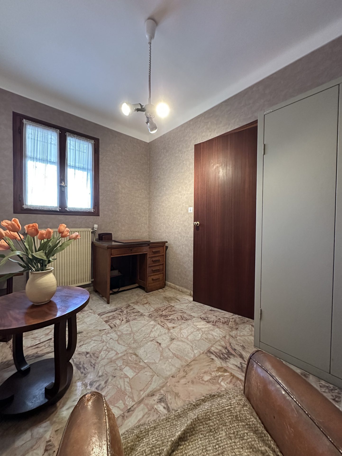 De beaux volumes avec marbre au sol et belle hauteur sous plafond. Restée dans son jus, elle nécessite une modernisaion générale, mais constitue une base parfaite grâce à une structure irréprochable et sans fissures.
