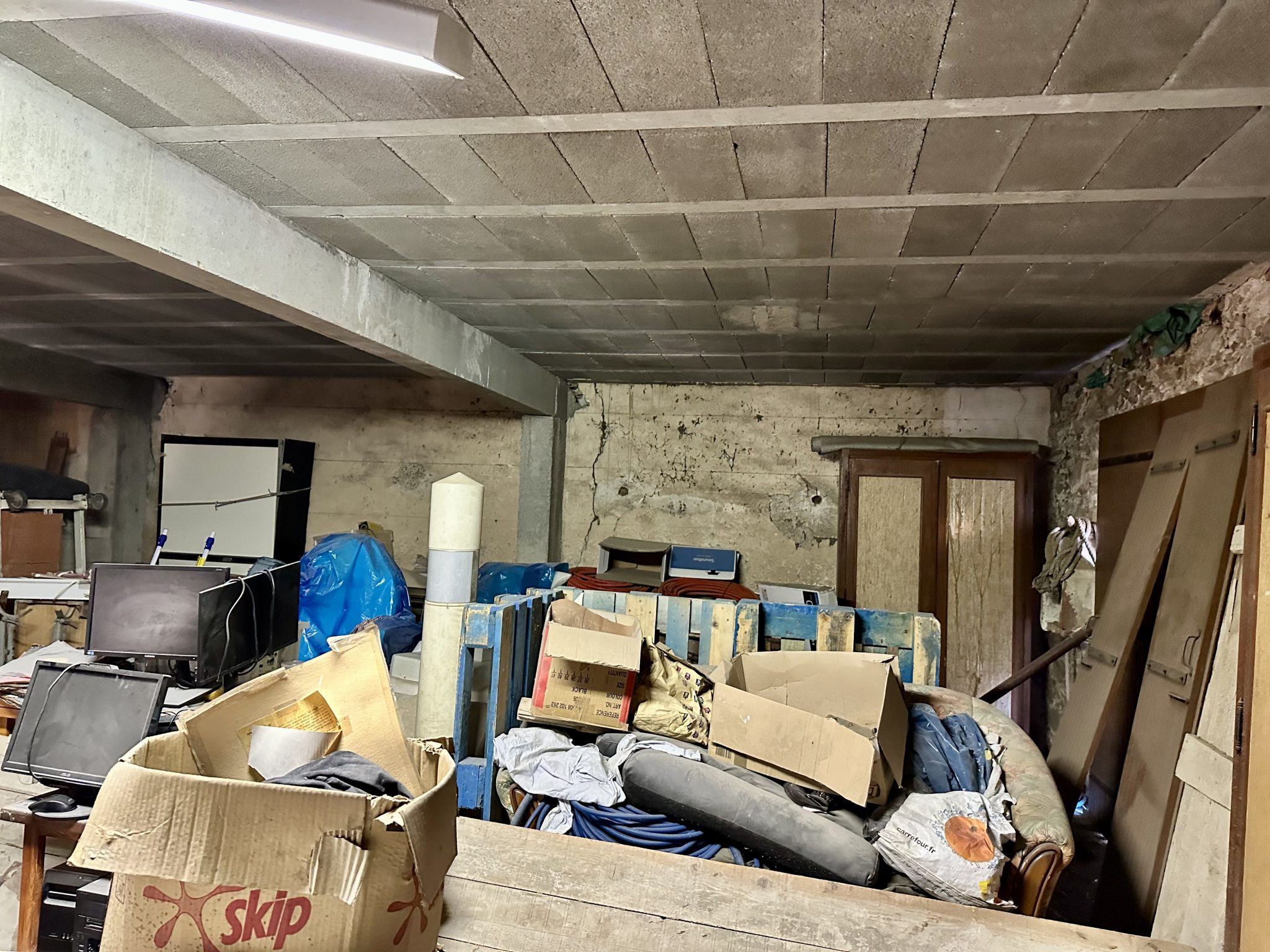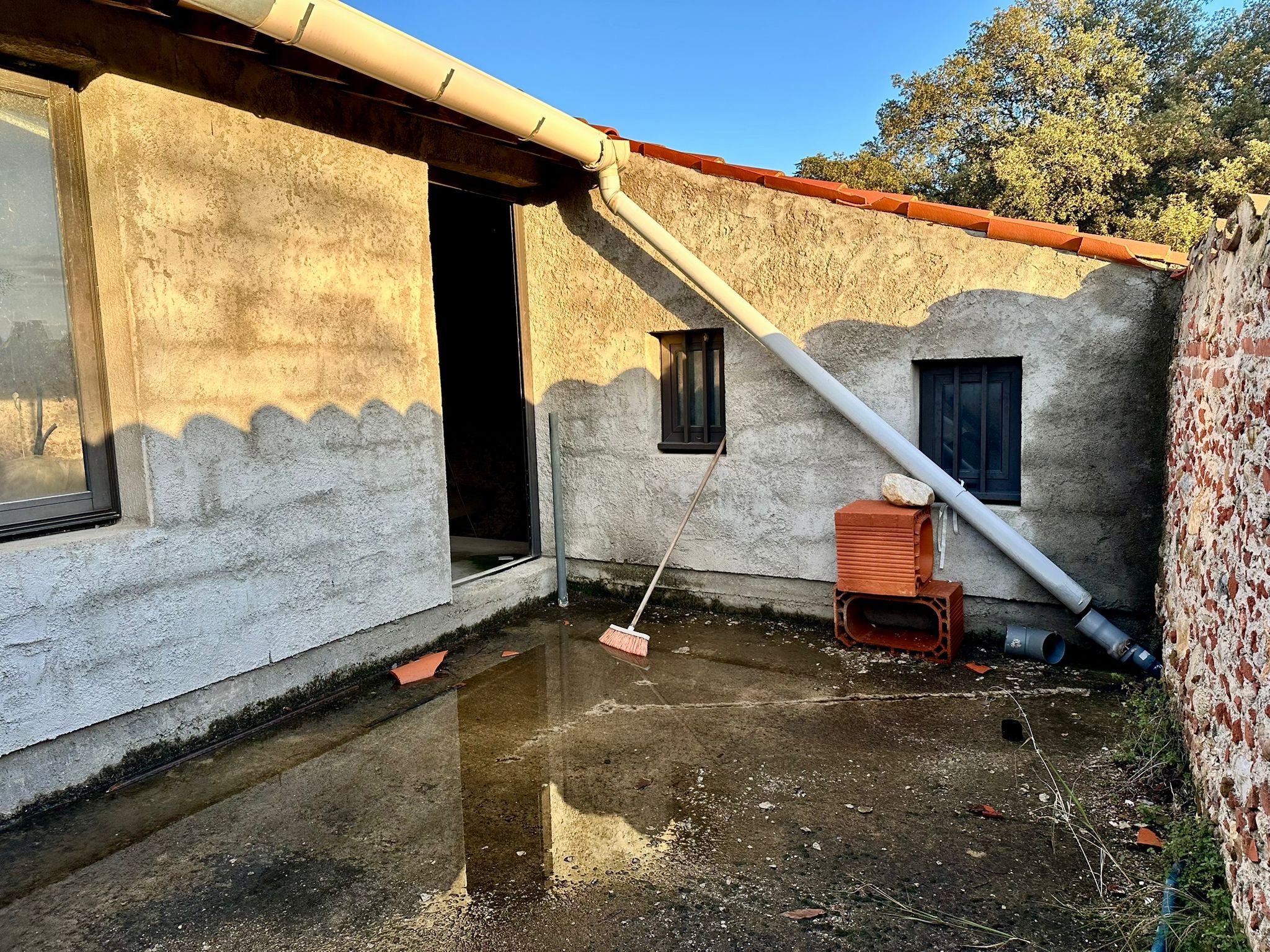 Raccordé à l’eau et l’électricité,  assainissement, plancher beton sur les deux niveaux, terrasse de 15m2.