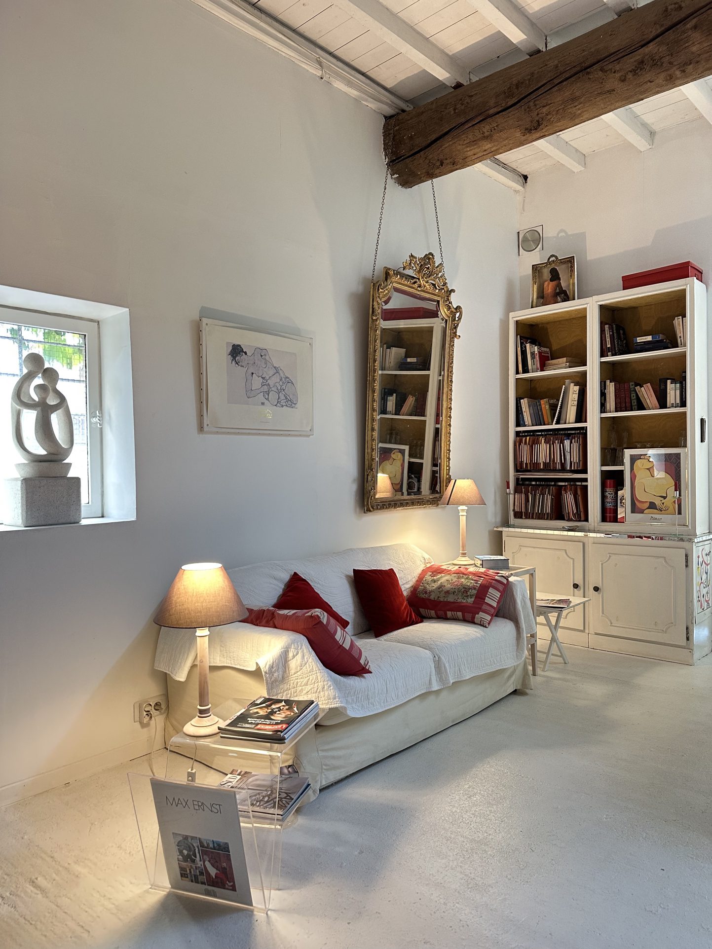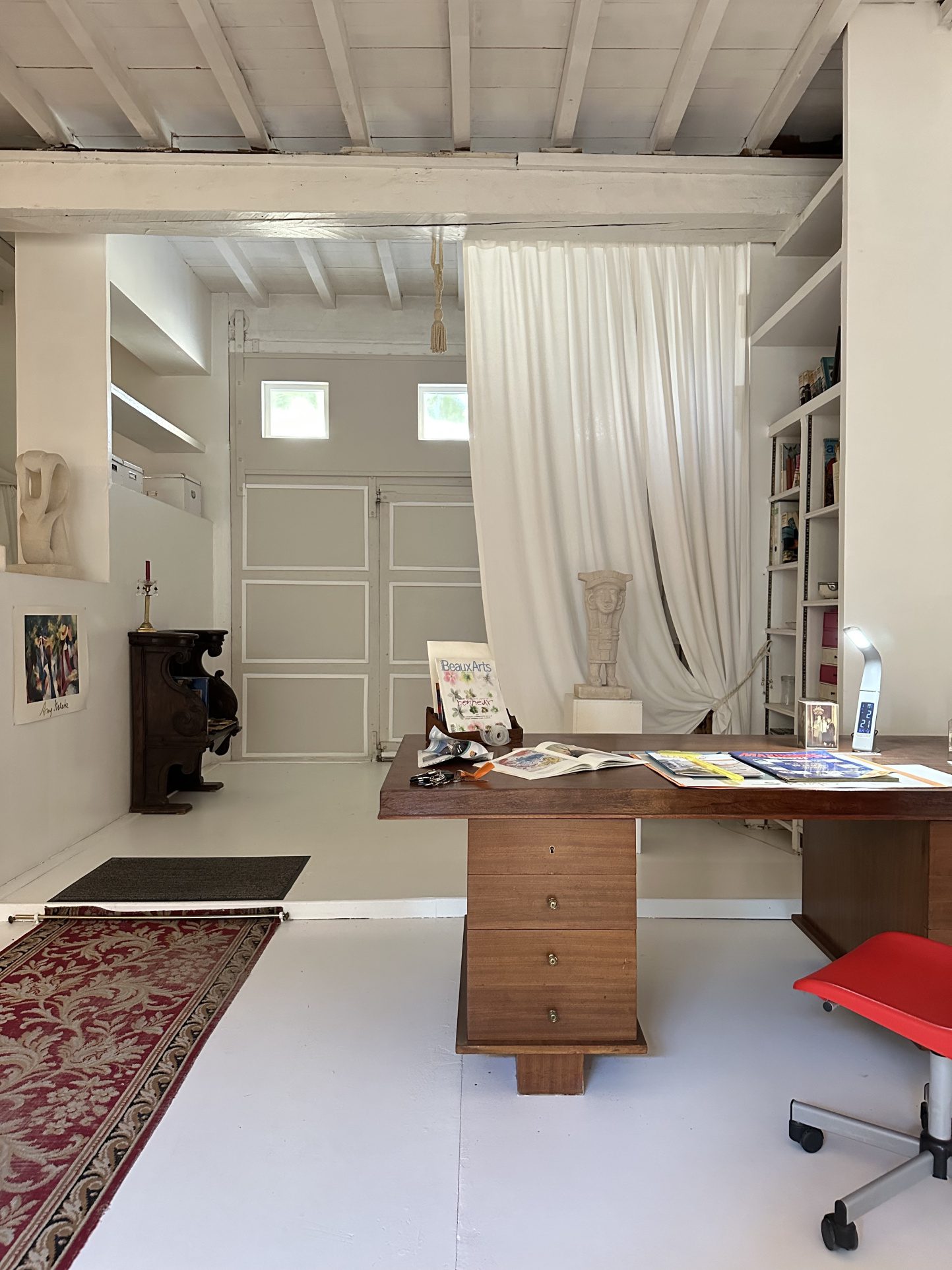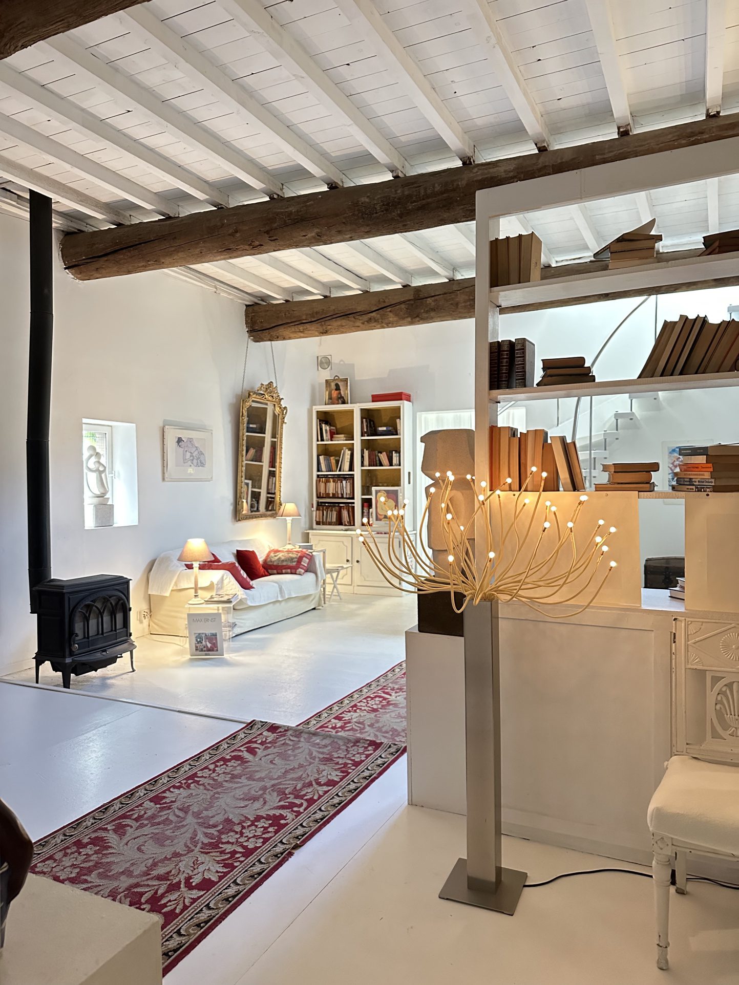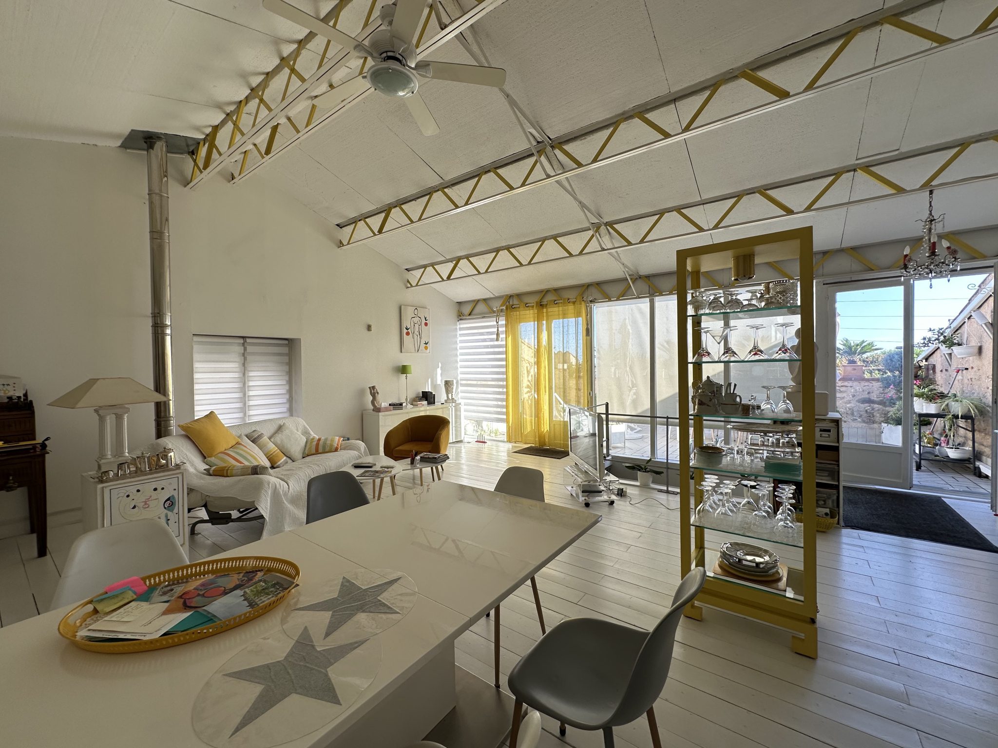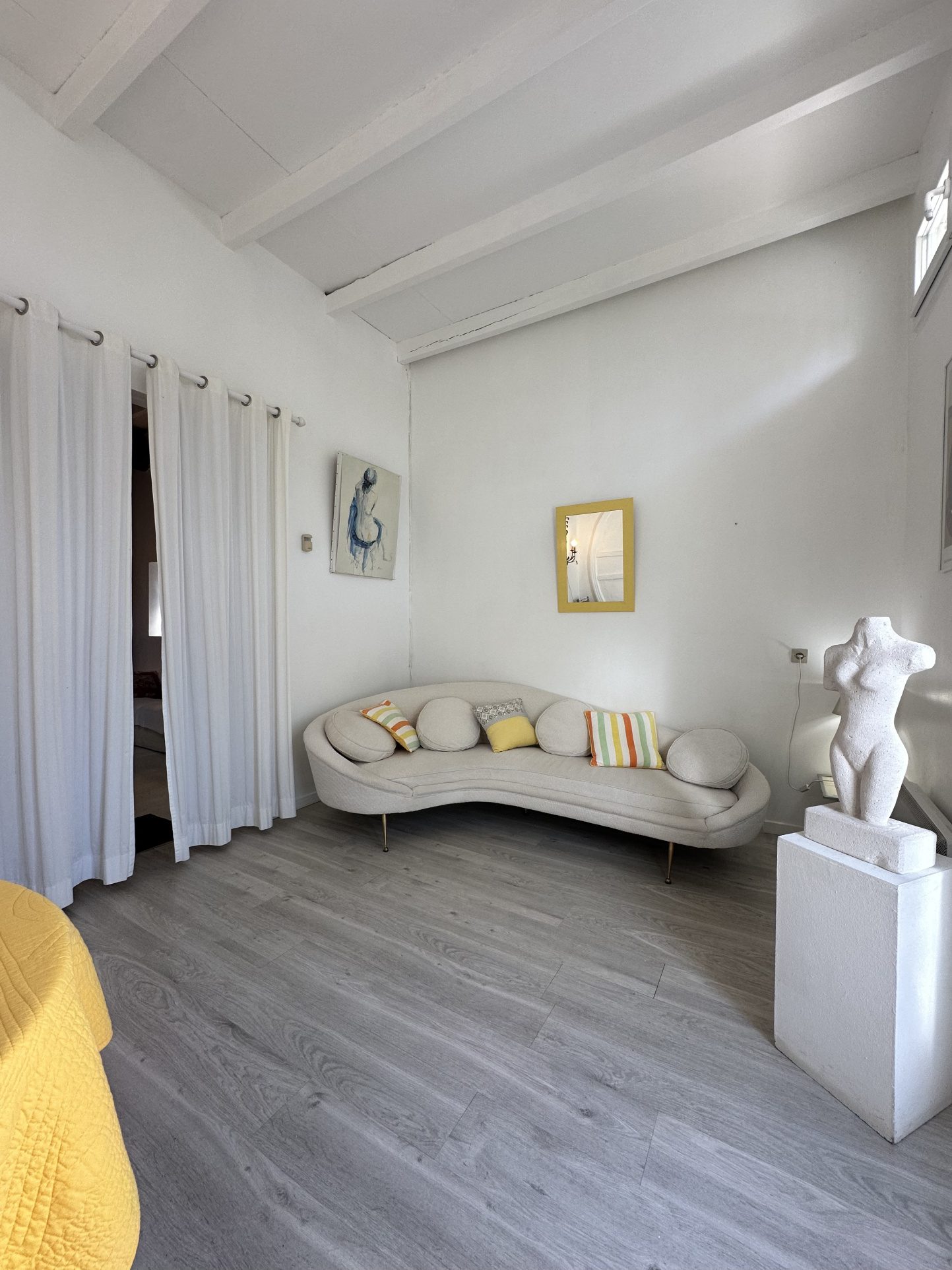 Le rez-de-chaussée, façon loft, offre un bel espace avec chambre, salle d’eau et plafonds hauts — idéal pour une activité libérale ou un atelier.