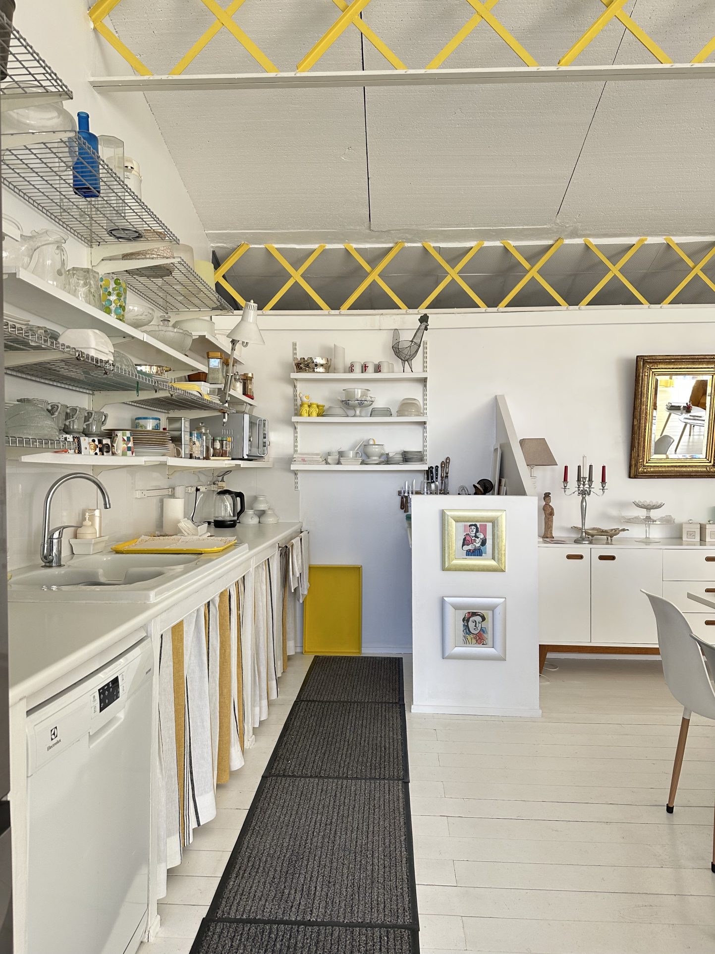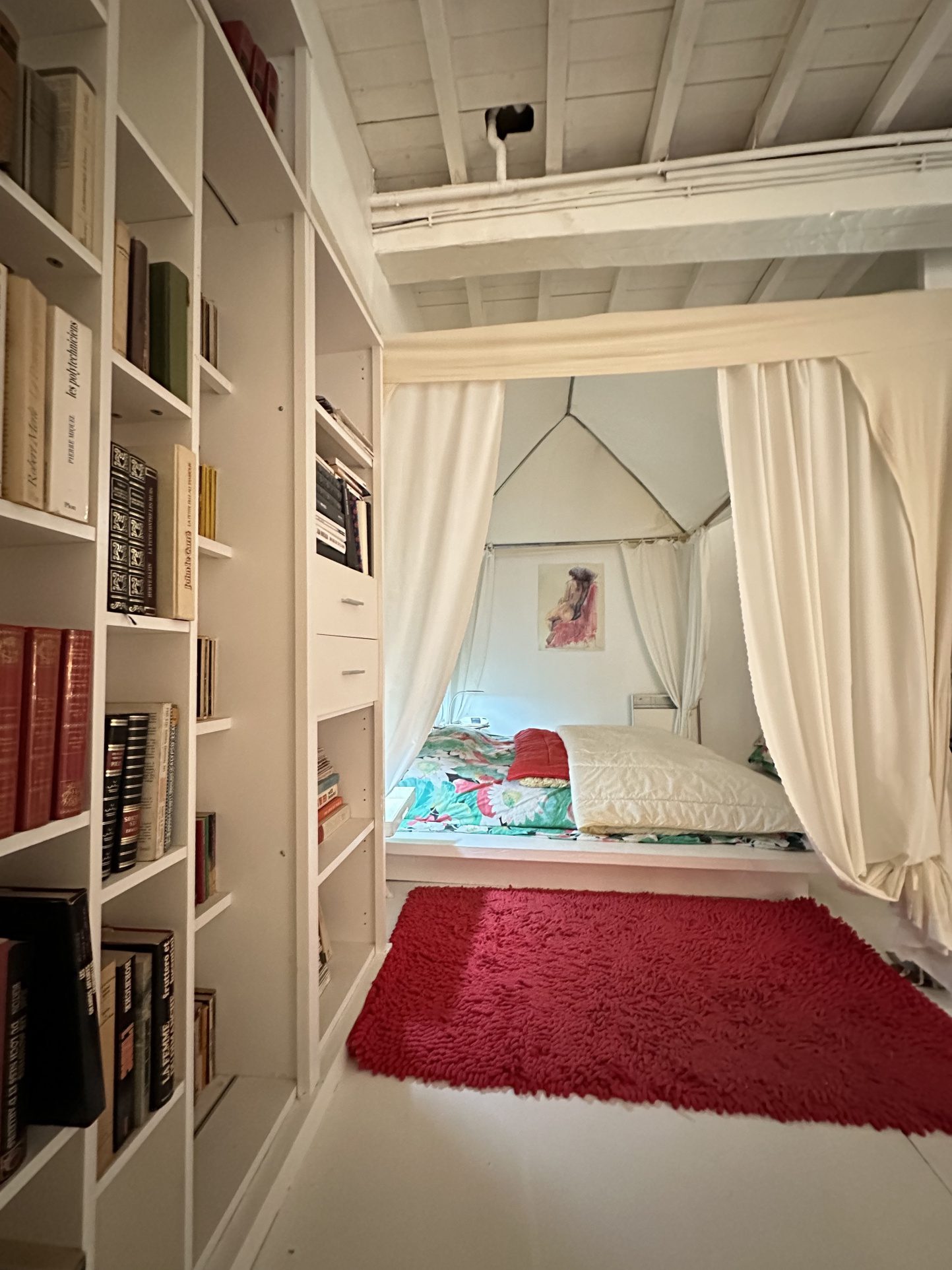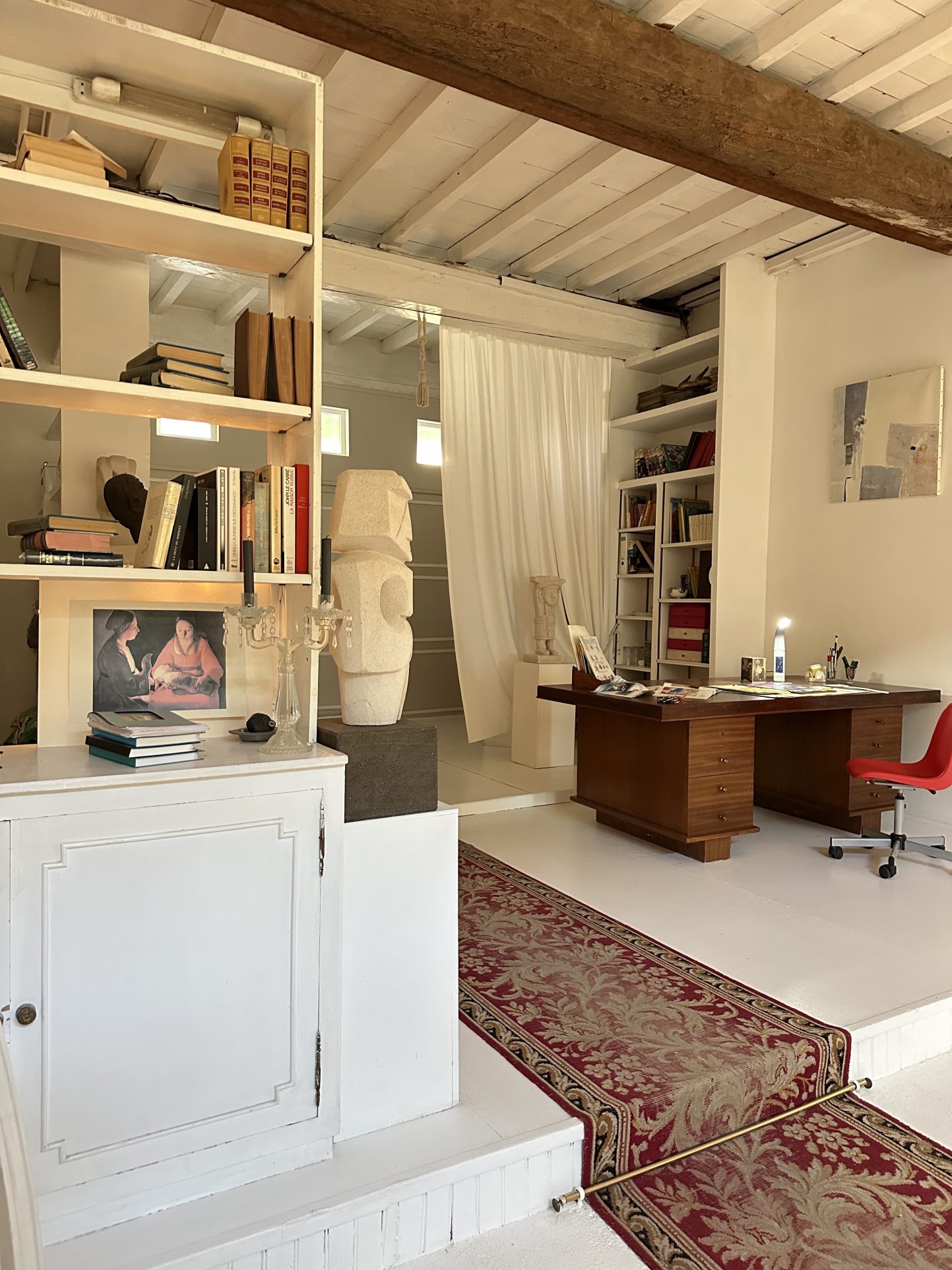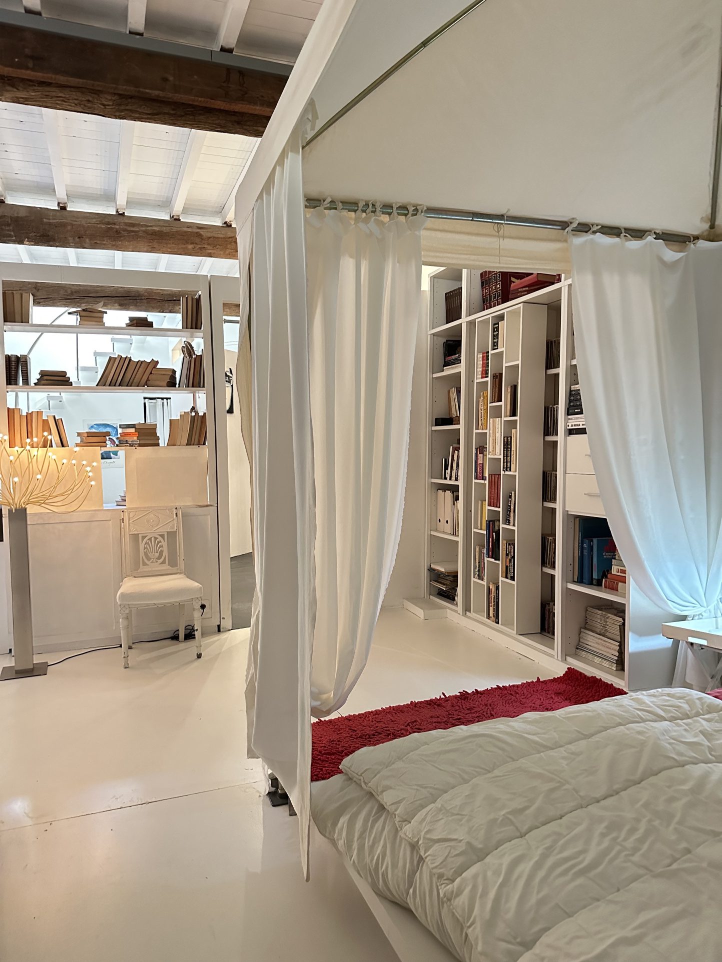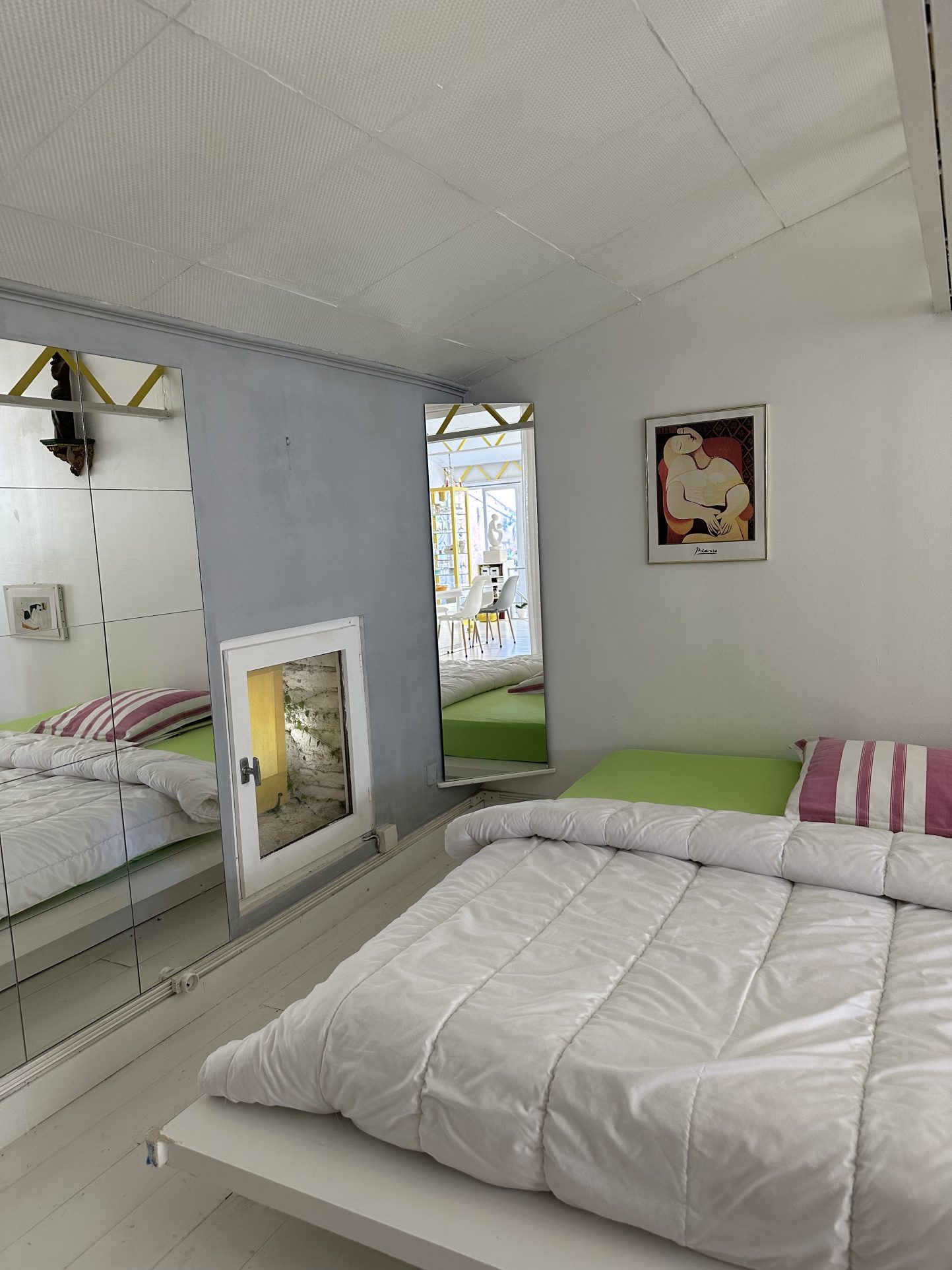 Le rez-de-chaussée, façon loft, offre un bel espace avec chambre, salle d’eau et plafonds hauts — idéal pour une activité libérale ou un atelier.