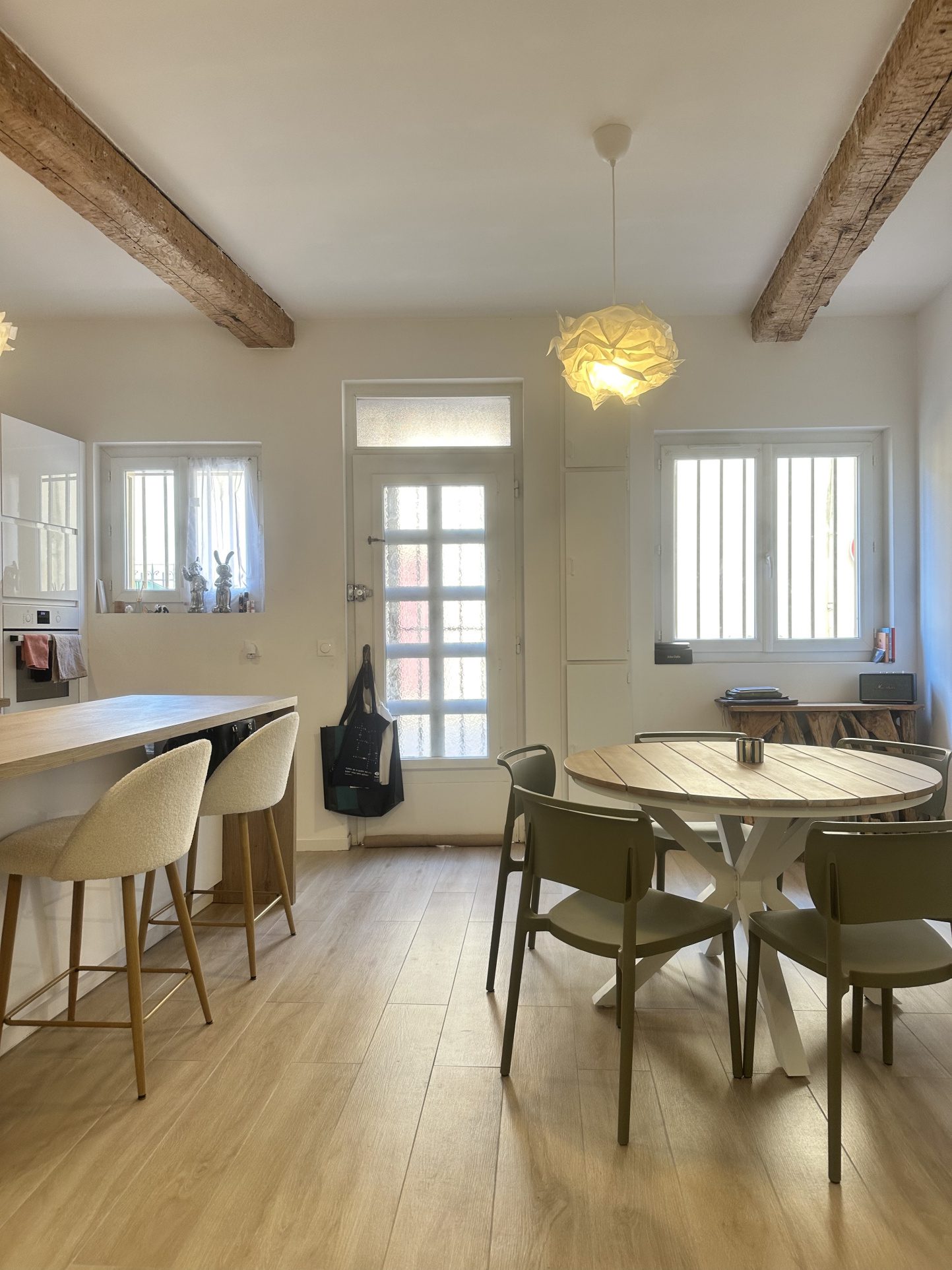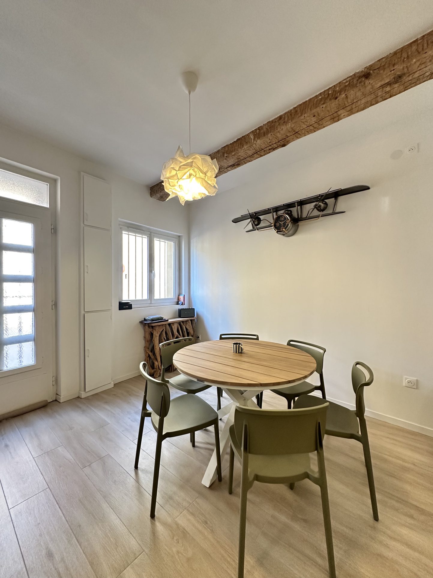 Plein centre village de SAINT CYPRIEN (66750). À deux pas des commerces et des services, découvrez cette élégante maison de ville en rez-de-chaussée surélevé de deux étages, entièrement rénovée avec soin.