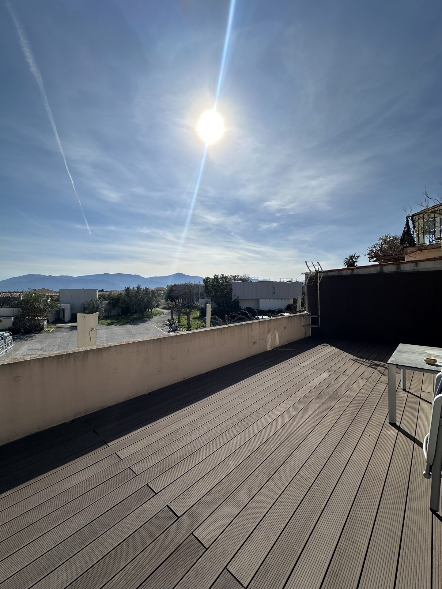 Très belle terrasse exposée plein sud offrant une superbe vue sur la chaîne des Albères.