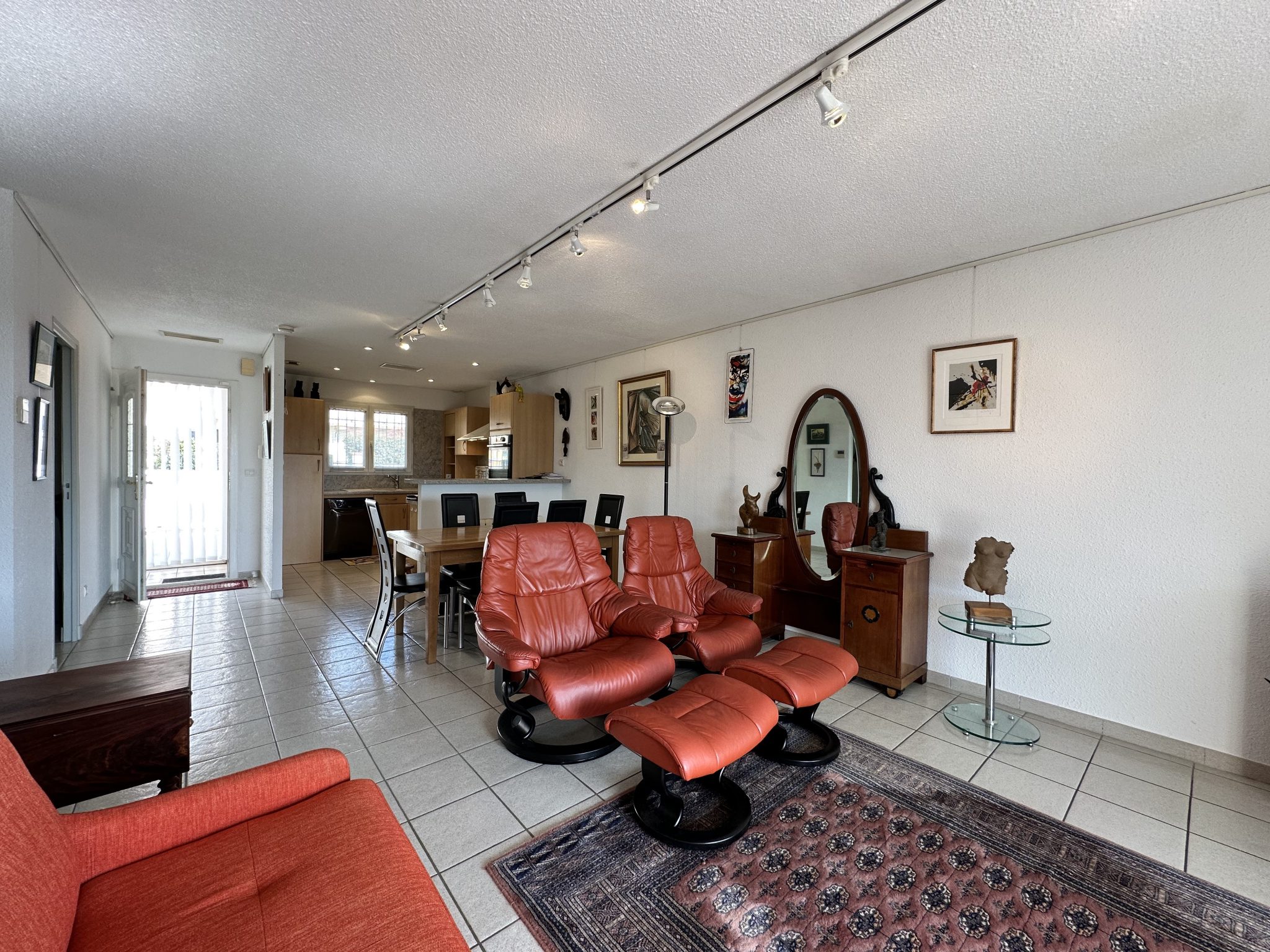 Elle se compose d’une agréable pièce de vie lumineuse et de deux chambres. La maison bénéficie de belles prestations : climatisation réversible gainable, double vitrage, volets roulants électriques et portail électrique.