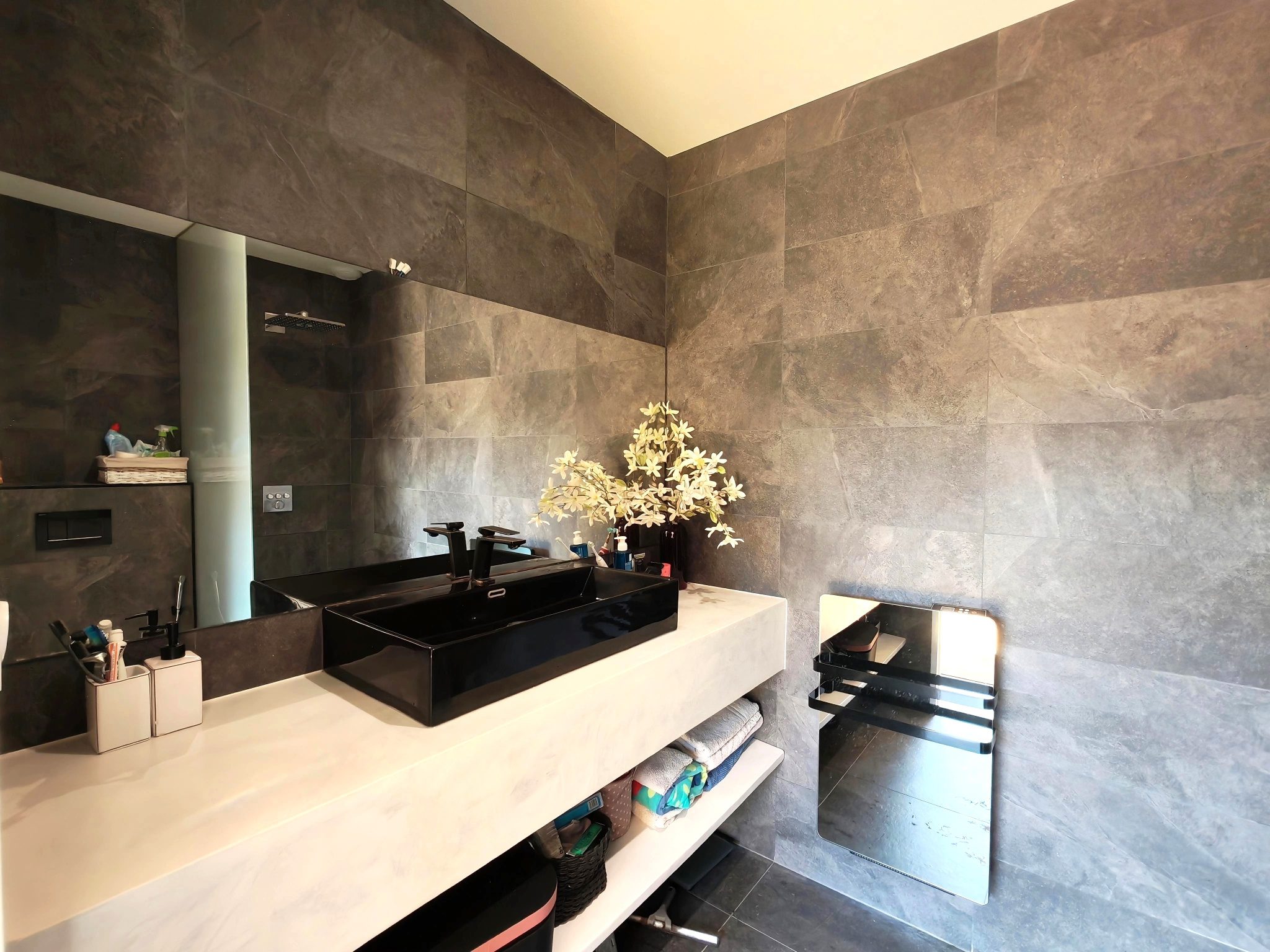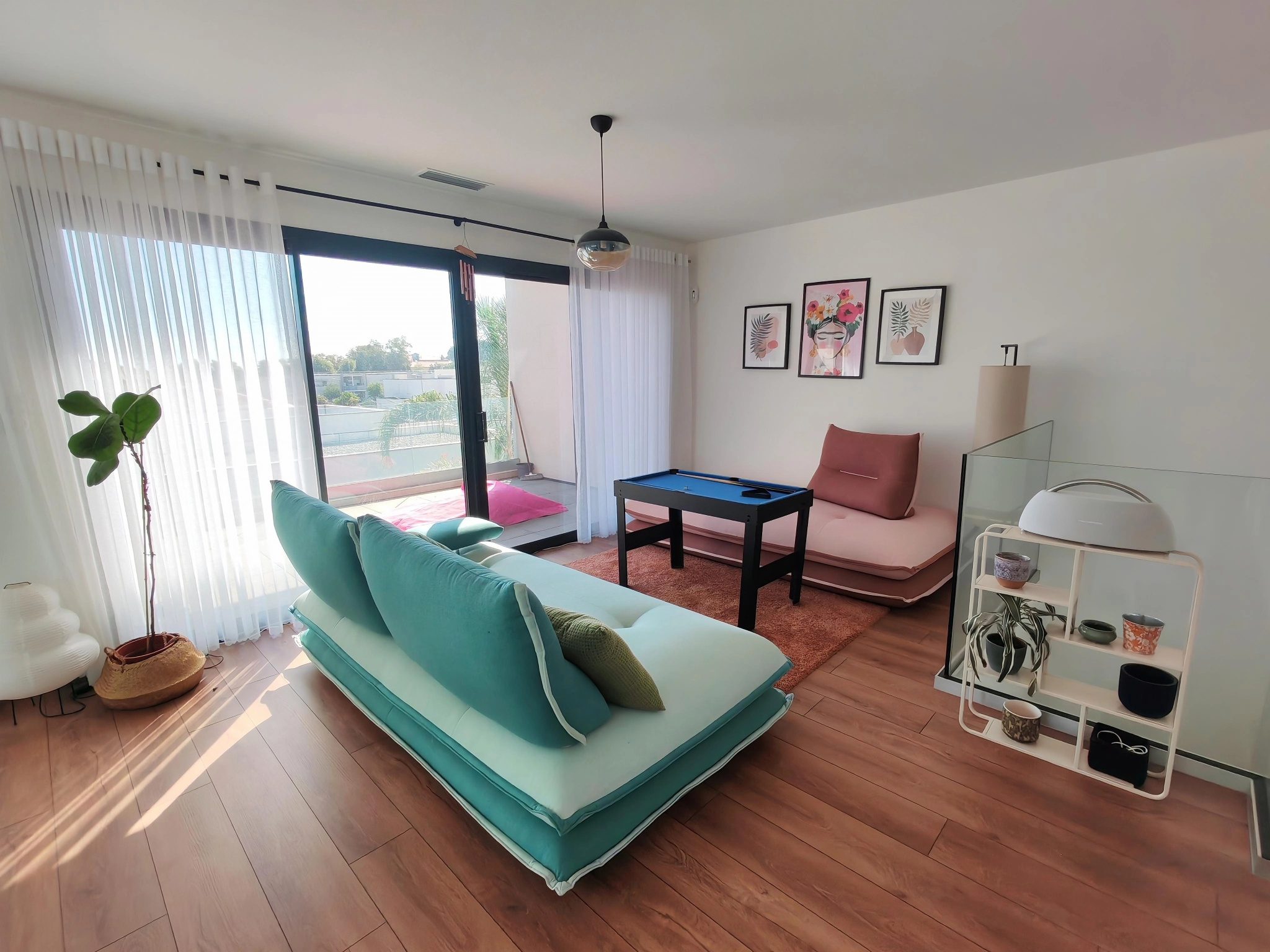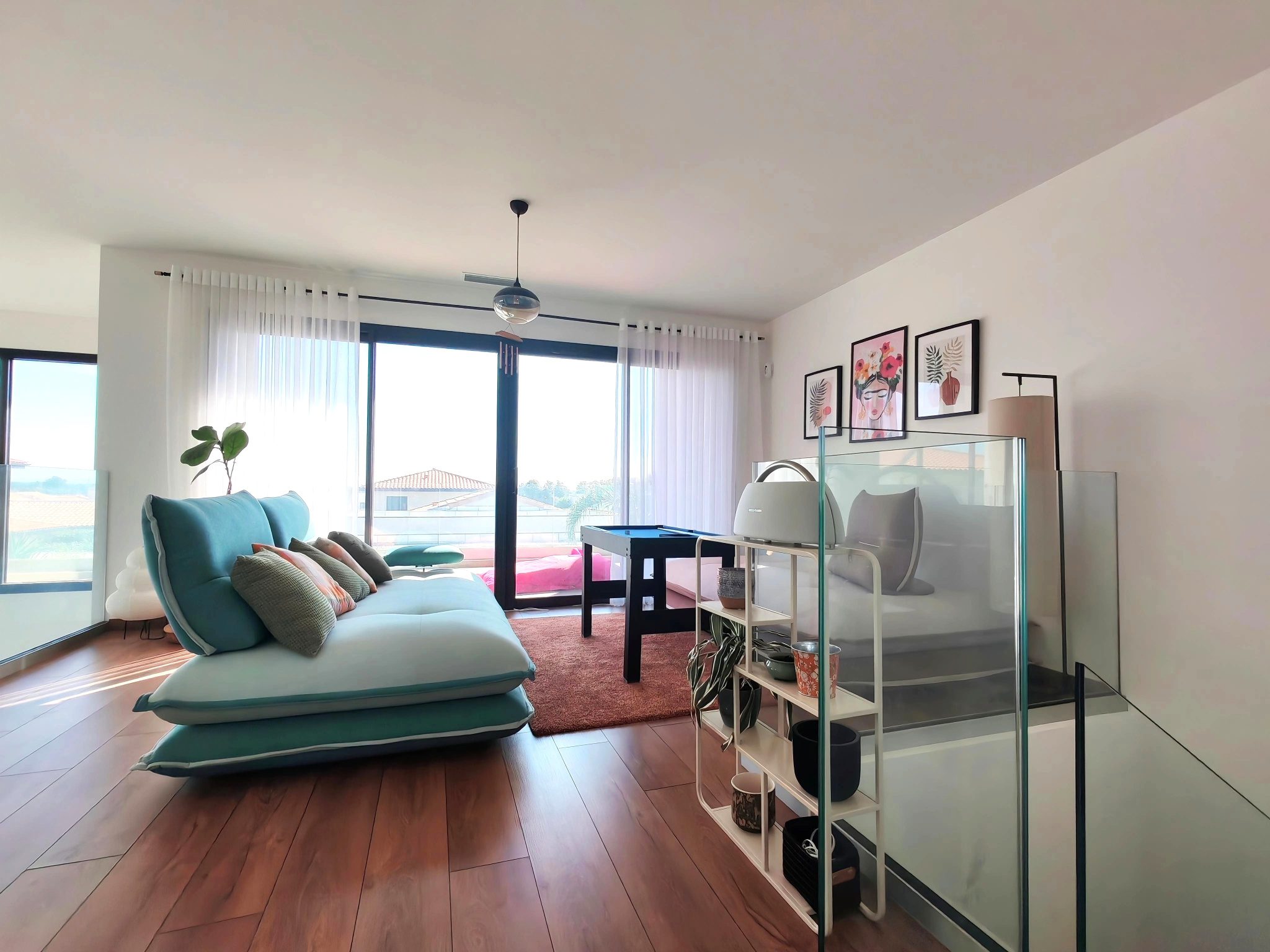 Dès l’entrée, vous serez séduit par la pièce de vie de 63 m2 baignée de lumière grâce à ses larges baies vitrées de 4 mètres, qui donnent une belle impression d’espace et de fluidité entre l’intérieur et l’extérieur.