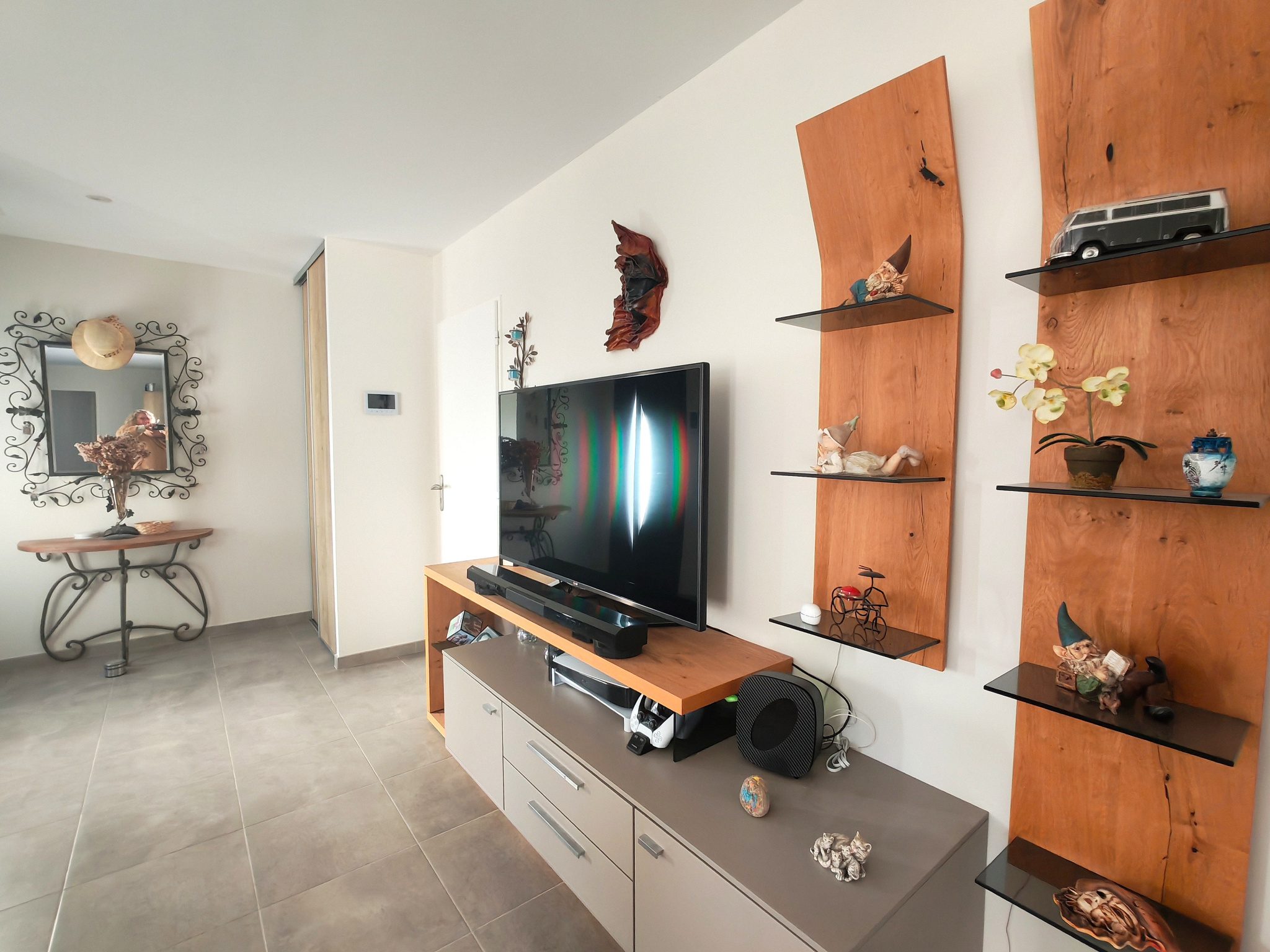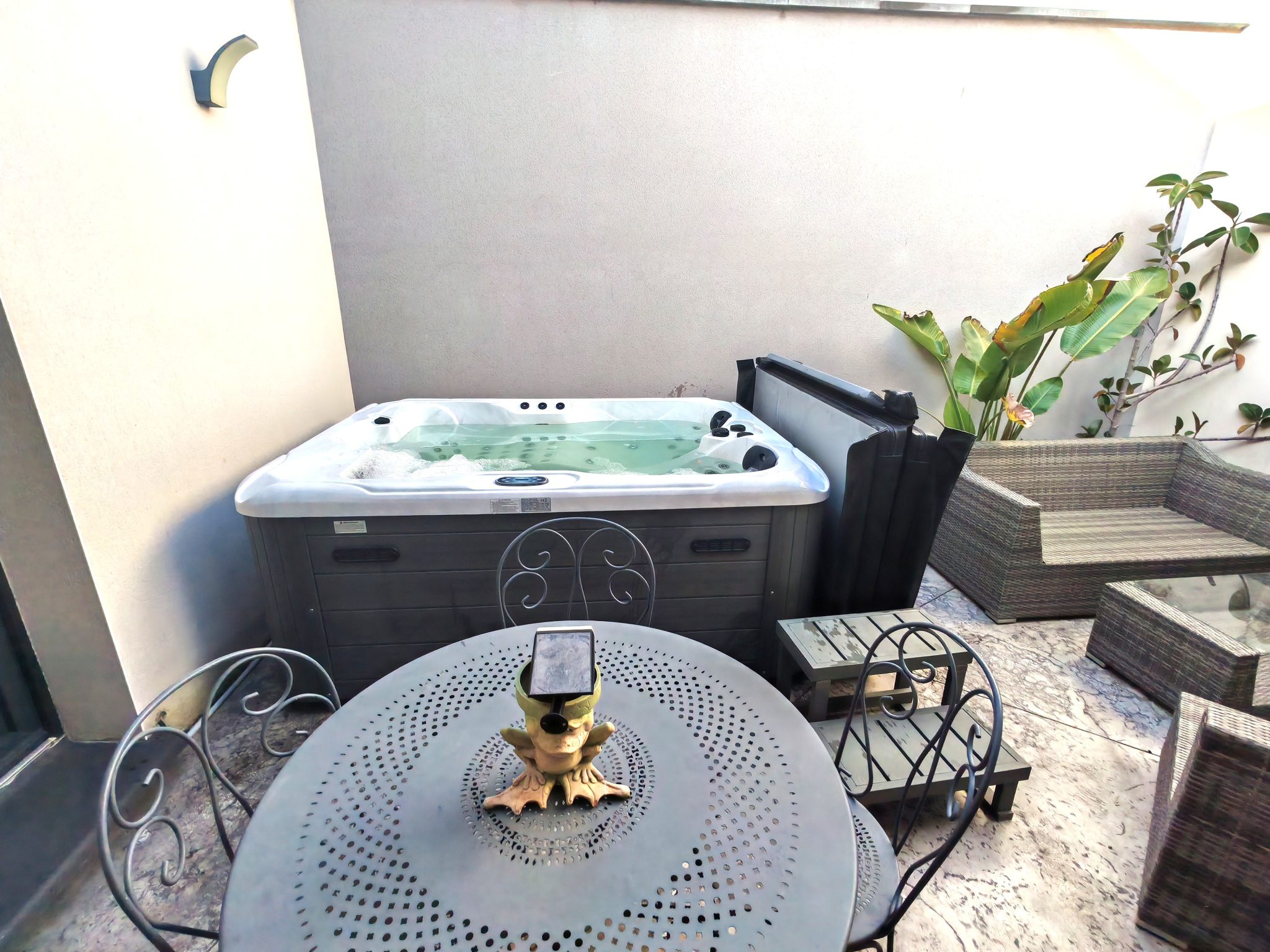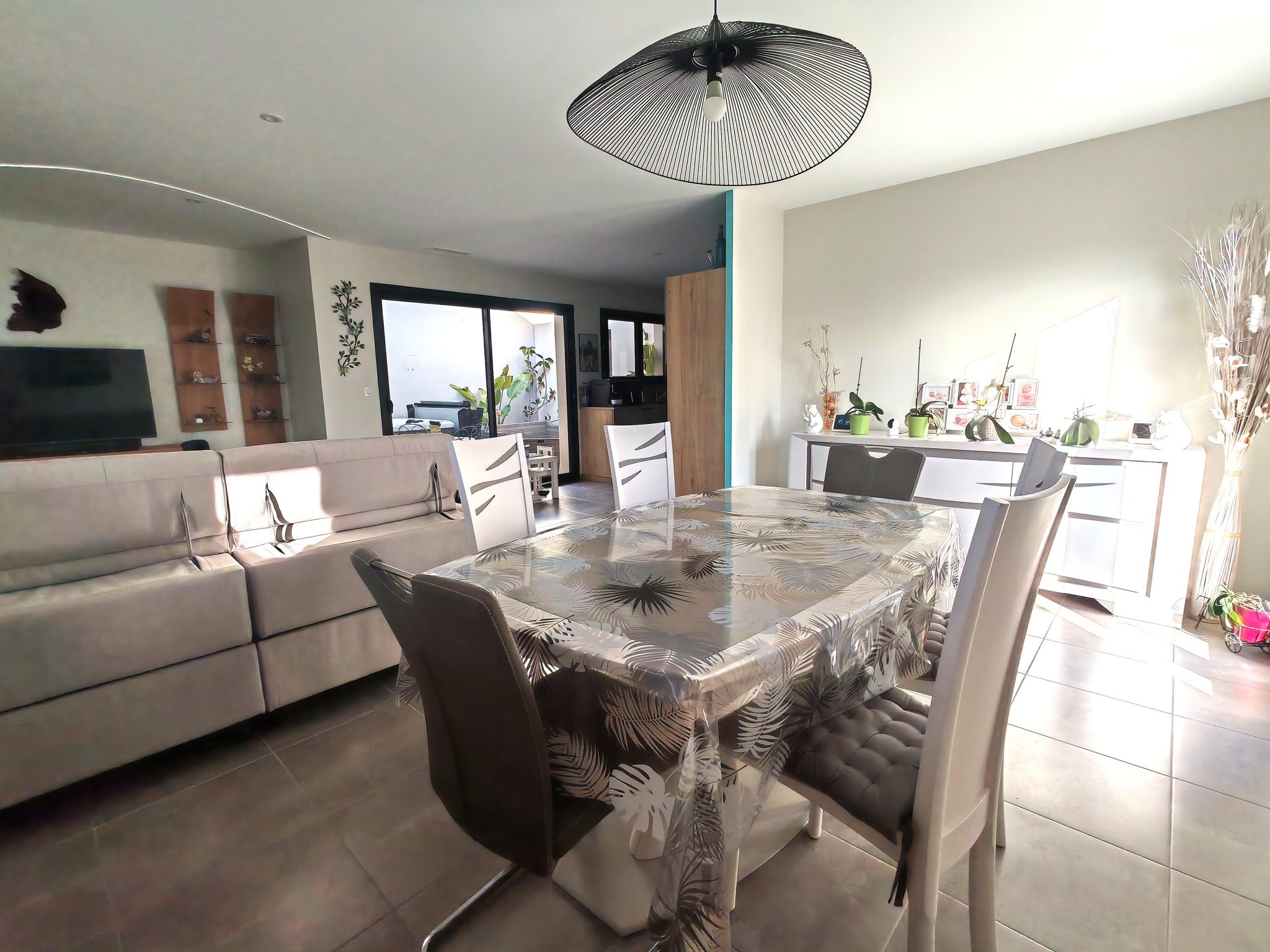 La maison développe environ 90 m2 habitables, articulés autour d’une spacieuse pièce de vie de 46 m2, baignée de lumière, avec cuisine américaine et ouverture sur un patio intérieur de 20m2 avec jacuzzi, véritable espace de détente à l’abri des regards. L’agencement, fluide et fonctionnel, offre une circulation agréable et un réel confort de vie au quotidien.